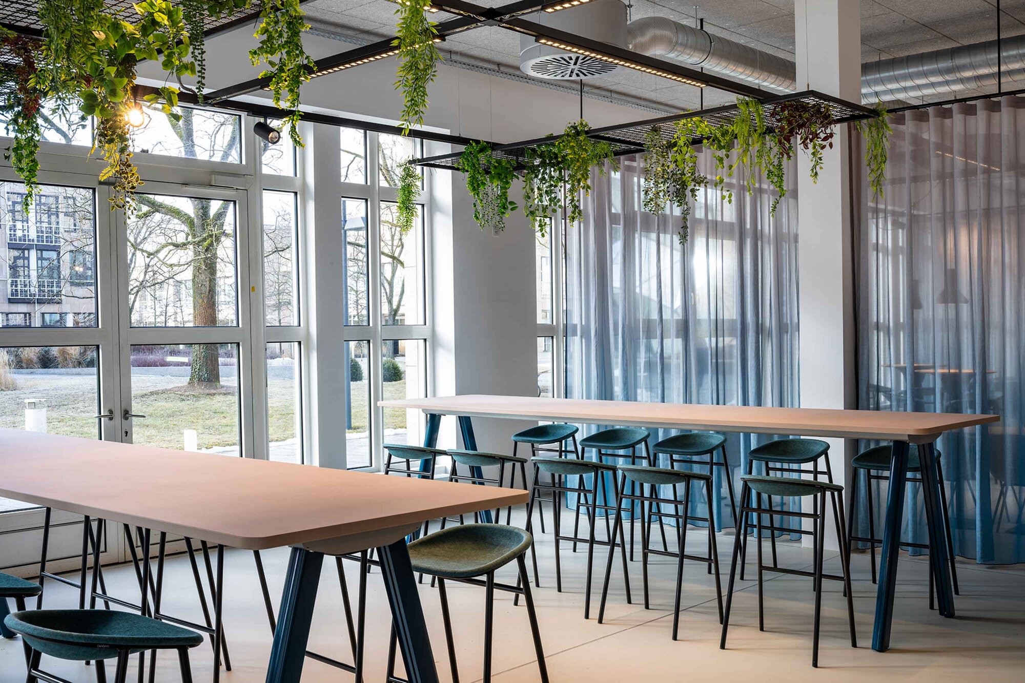 Das Restaurant dient als zentraler Treffpunkt für den gesamten Campus sowie die Mieter vor Ort. Entsprechend wurde ein Raum geschaffen, der sowohl funktional als auch kommunikativ wirkt und unterschiedliche Nutzungsanforderungen miteinander vereint. Die Gestaltung unterstützt dabei nicht nur die gastronomische Nutzung, sondern stärkt zugleich das Gemeinschaftsgefühl und die Identität des Standorts.