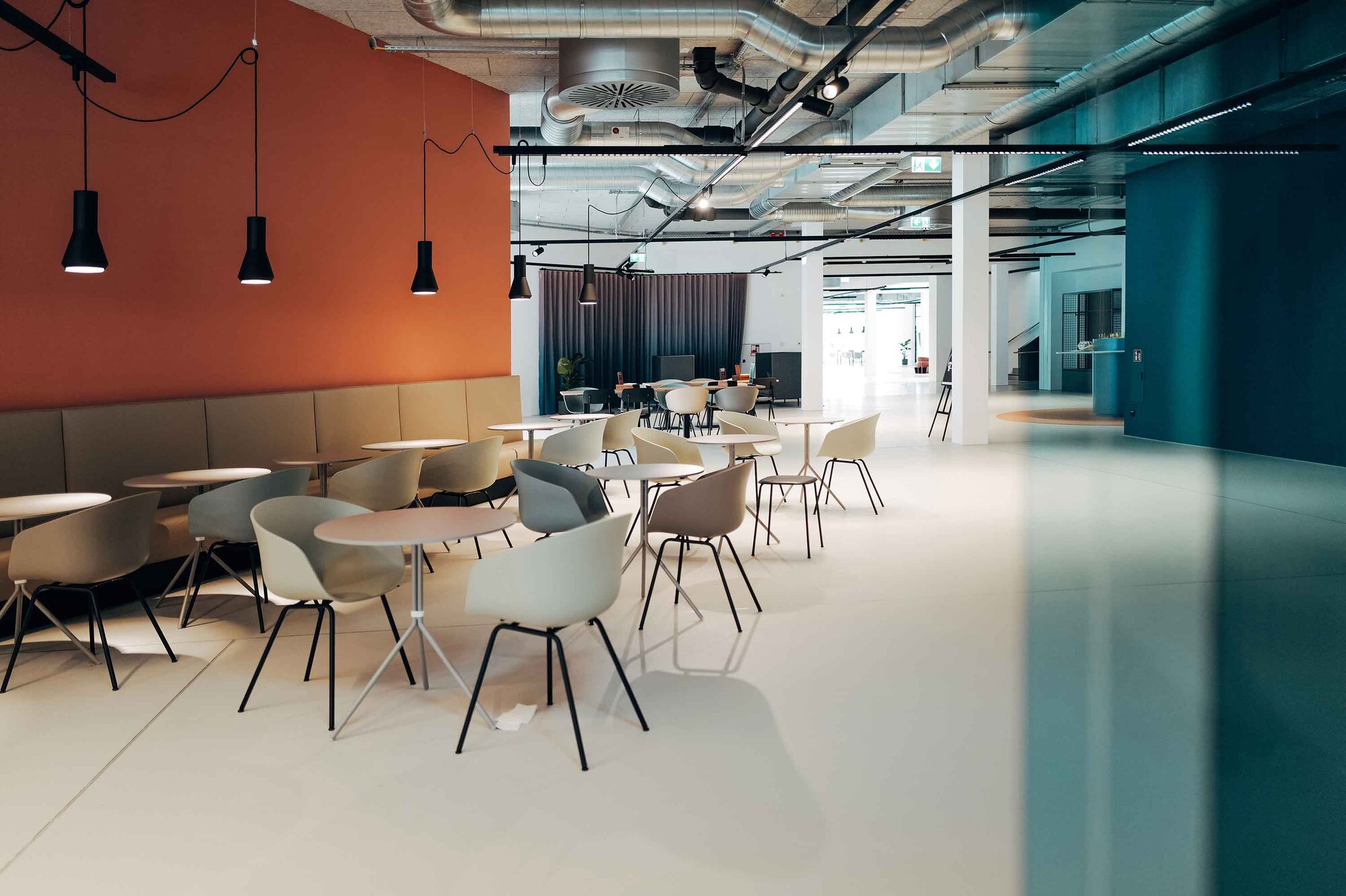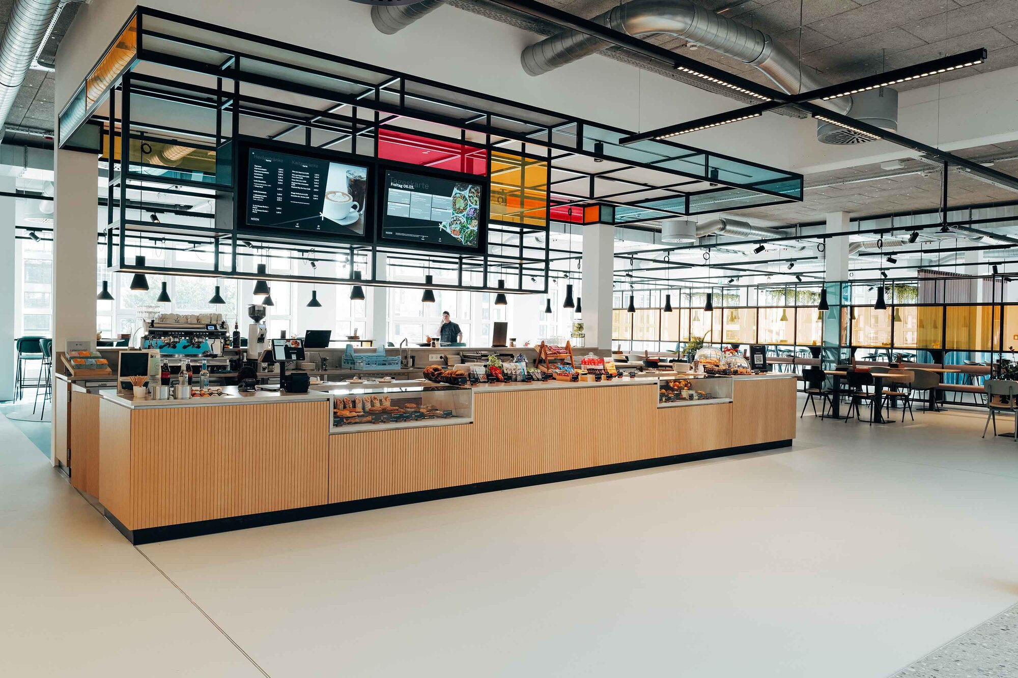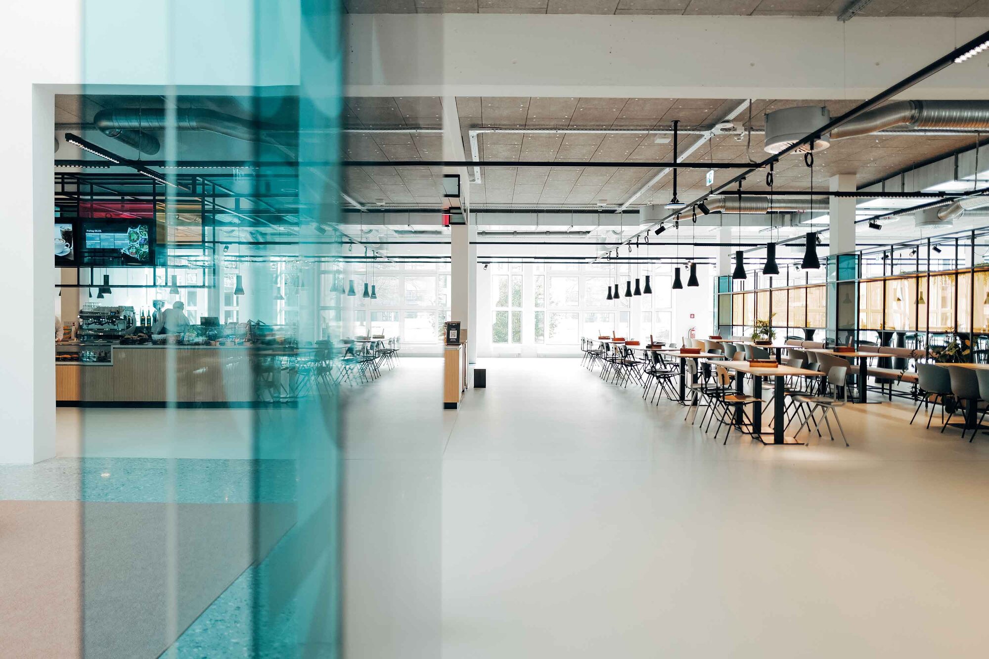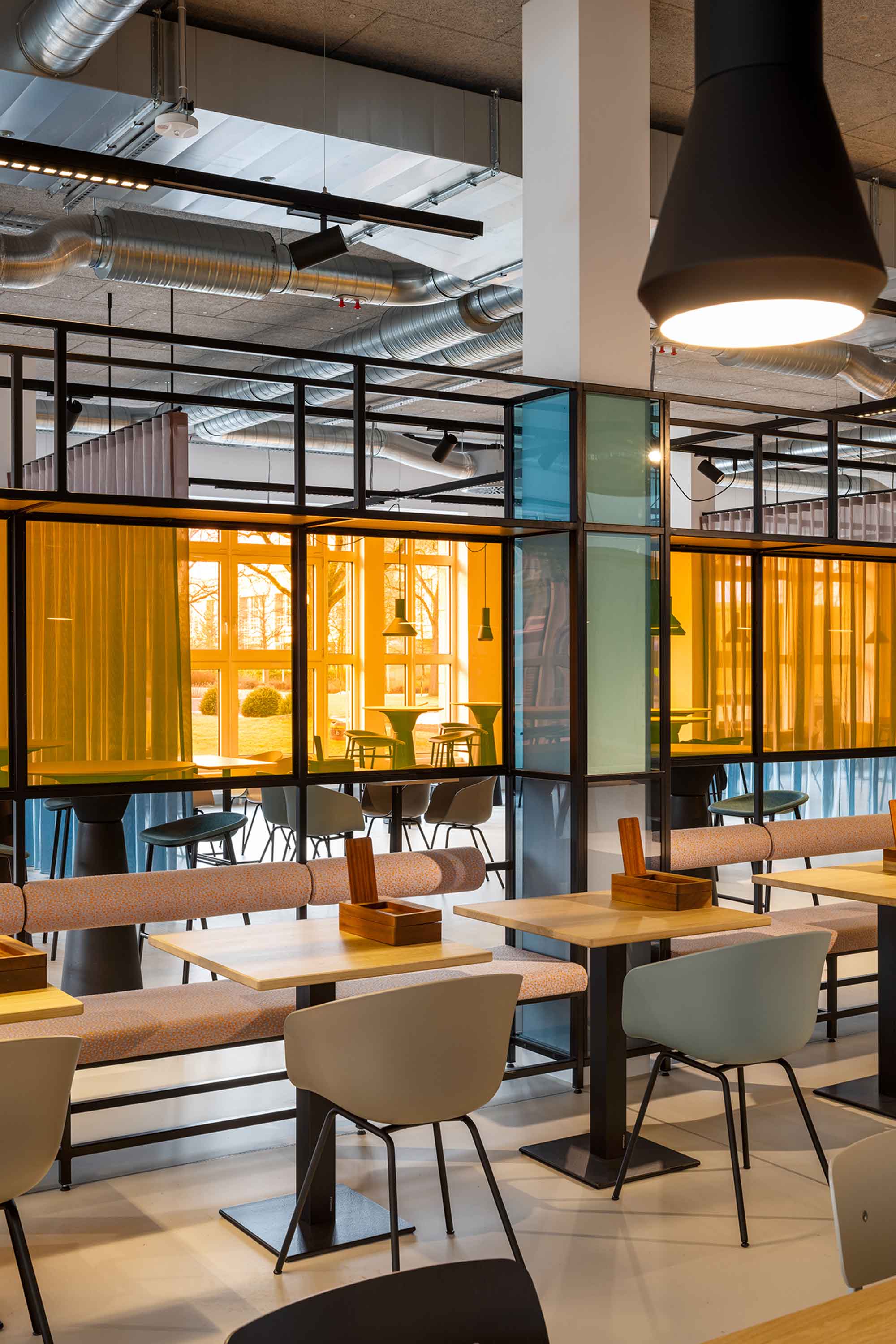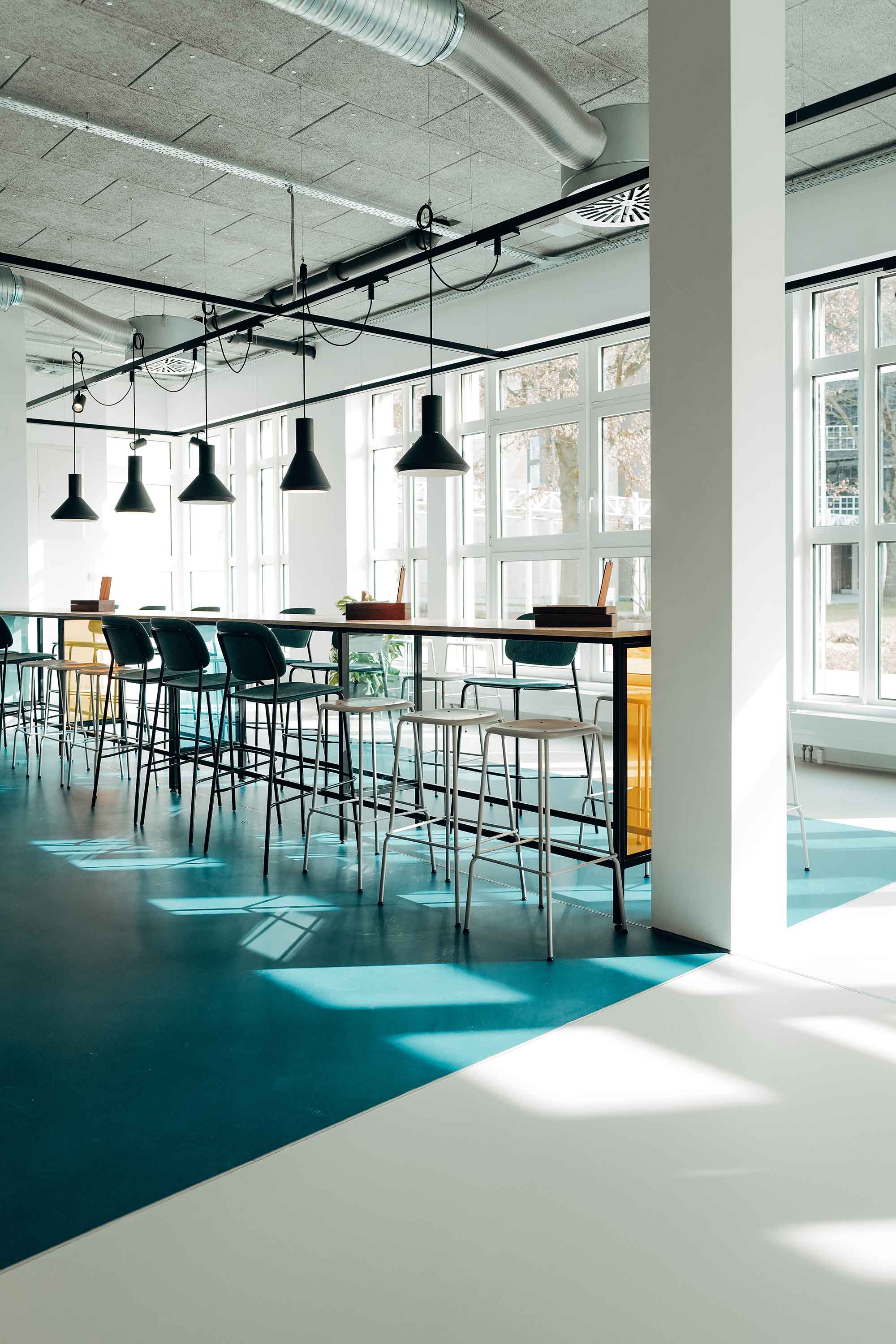 Das Restaurant dient als zentraler Treffpunkt für den gesamten Campus sowie die Mieter vor Ort. Entsprechend wurde ein Raum geschaffen, der sowohl funktional als auch kommunikativ wirkt und unterschiedliche Nutzungsanforderungen miteinander vereint. Die Gestaltung unterstützt dabei nicht nur die gastronomische Nutzung, sondern stärkt zugleich das Gemeinschaftsgefühl und die Identität des Standorts.